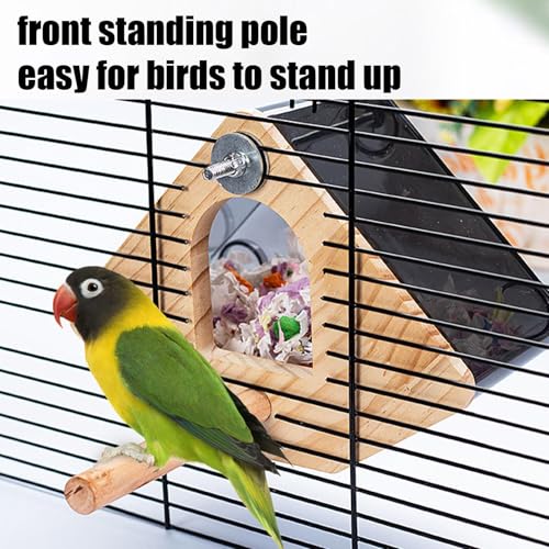 Sturdy Materials: Clean Clear Parrot Made of acrylic and wooden materials, this parrot nesting box is built to last, and can be used for a long time without any fear of deformation or damage.