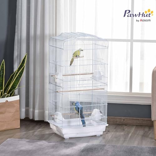PawHut Bird Cage with Stand, Perches, Food Bowls, Swing, Parrot Cage for Budgie, Parakeet, Small Bird, 46.5 x 35.5 x 92cm, White