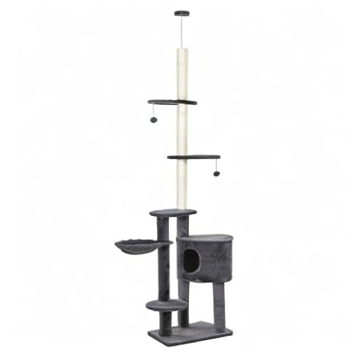 ACTIVITY CENTER: This cat tree ceiling ranges in height from 220-265cm and can be secured to the ceiling using the included tension rod. Also with a condo, a side bed and several jumping platform for indoor cats to explore more fun.