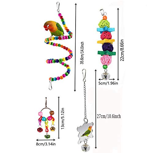 ??Bright Colors & Fun Toys?: The bird toys own dyed by edible pigments, bright colors can attract the bird’s attention quickly. The bell toy and mirror will attract your birds to play and chew.