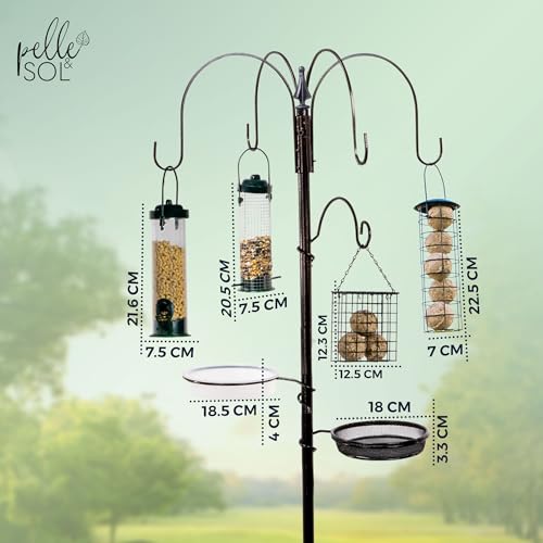 ???????????????????????????????????????????????????? ????????????????????????: The wild bird feeders are designed with 1x finial, 3x pole sections, 2x double bucket, 1x seed feeder, 1x nut feeder, 1x suet block feeder, 1x mesh tray, 1x water dish, and 1x wrap-around single bracket which is large enough to feed most type of bird. It also allows all kinds of birds to feed.