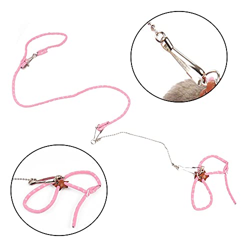 ?Specification: 1 x pink pet hamster harness. Rope length: 60cm, anti-bite chain: 20cm, neck circumference: 6-15cm, chest circumference: 8-18cm.