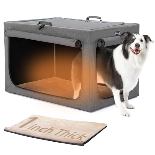 Sturdy and Snuggly?This dog crate is made of sturdy rectangle frame, which can be adjusted based on the cover. It contain a fleece mat inside.The dimension is 89*58*58 cm, recommended pets up to 25kg, but please measure your pet before buying to ensure whether it is suitable or not.
