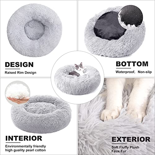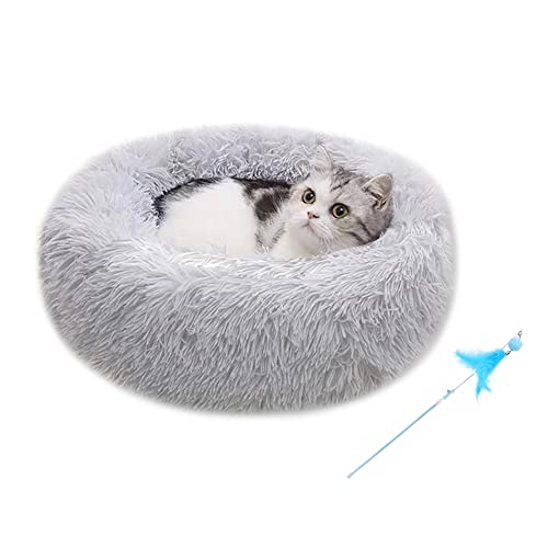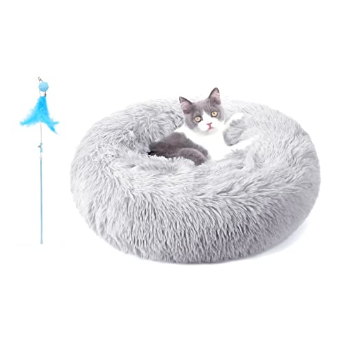 Supports Deep Sleep: Thanks to its round shape,our fluffy donut cat bed, can relieve pet's anxiety, let pet feel more secure! The raised rim creates a sense of security and provides head and neck support, provides more comfortable deep sleep.
