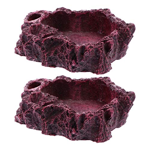 POPETPOP 2Pcs Reptile Feeding Bowl Resin Rock Bearded Dragon Food Water Dish Feeding Basin Fish Tank Aquarium Ornaments Decor for Turtle Gecko Snake Amphibian