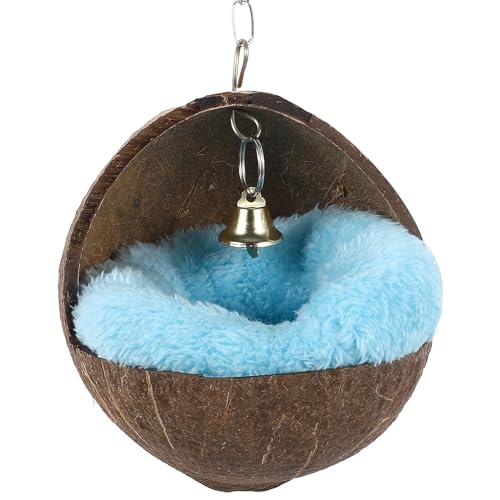 Adorable coconut shell house helps greatly to kepping warm, provides a warm nest for small animal to play and rest.
