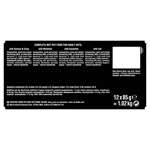 Box with 4 lavish varieties: Salmon and coley, whitefish, ocean fish, and cod pouches that are ready to serve in a delicious gravy sauce without artificial colours or preservatives