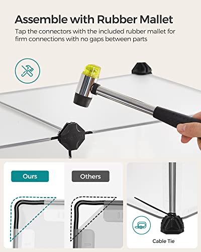 [Assembly Is a Breeze] Simply join the plastic panels with the multi-angle connectors with the help of the included rubber mallet, you’ll quickly set up this pet playpen. The modular, lightweight structure also makes it easy to disassemble or move around