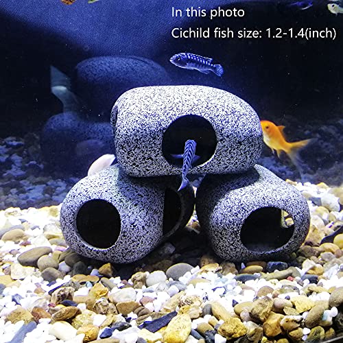 ---This hideaway stone is a good cave for fishes, shrimps to breed, play and rest. Betta, shrimp, guppy, snail...will love it. ---Be suitable for small fishes, easy to clean, good for nitrifying bacteria reproduction which can help to improve water. ---Ceramic material with granite pattern, safe and non-toxic for fishes. No Fading, No smell. ---No sharp or rough edges, no worry on scraping fins. ---A cute decorative piece, get it to create a natural and living environment for your fish tank.