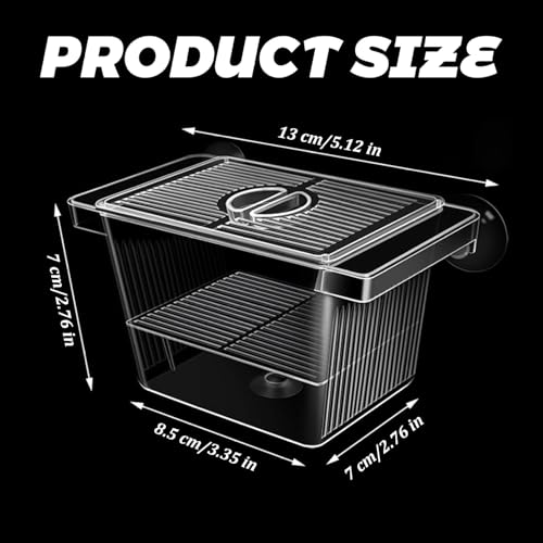 Clear Transparent Design: The Fish Breeding Box features a transparent design, allowing you to easily monitor your fish and shrimp while they breed and grow. Enjoy unobstructed views of your aquatic pets in a safe and secure environment.