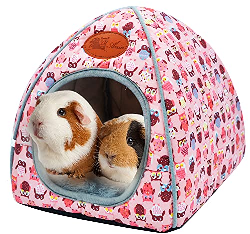 ??Cute Pattern Design & Easy to Clean? Little pets from nature will be more willing to live in cave-shaped guinea pig bunny house. Cute pattern colors can relieve our little pet’s anxiety.Removeble cushion in the cave is convenient for us to clean up the excrement of small pets. It also supports machine washing, but please pay attention to wash it separately from the clothes.