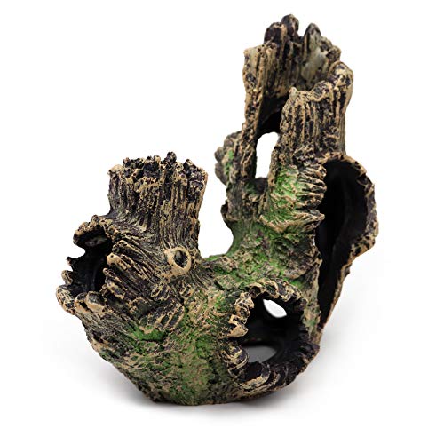 FLEXIBLE AND REALISTIC: The resin aquarium is decorated with artificial wood, turning the fish tank into a beautiful landscape