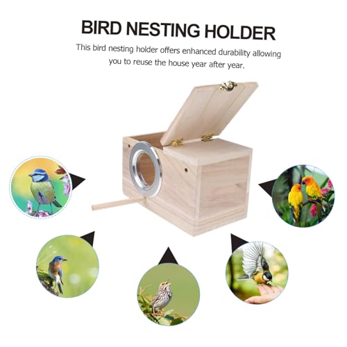 TOGEVAL Wooden Bird Parrot Holder Small Nesting Box with Clear View Window Wind Resistant Bird House for Songbirds Finches Breeding Organizer for Outdoor Observation