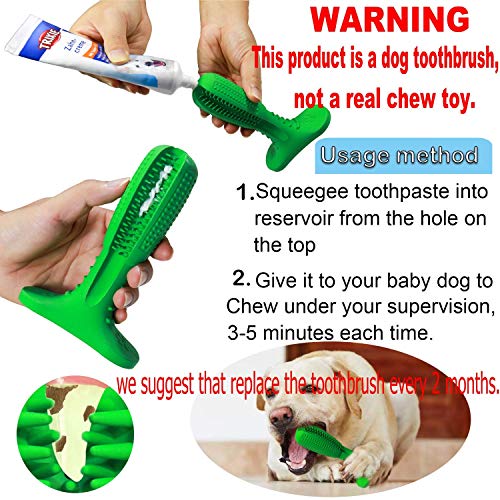 EASY TO USE - Strong food grade rubber safe for dogs to chew and easy to use, Squeeze toothpaste into the reservoir from the hole on the top of the toothbrush for dogs, only 5 minutes chewing to clean your pet tooth.