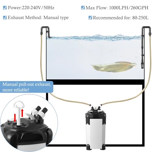 ????Durable and Reliable: Strong enough materials and detail design are used to make this fish tank external filter more durable. With manual exhaust device, the using of external filter can be safer and more reliable.