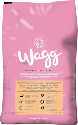 1. PERFECT FOR SENSITIVE STOMACHS - Wagg Wheat Free is a natural, yummy meal for the more sensitive dogs out there. 2. NO ADDED WHEAT - Wagg Wheat Free is a complete adult dog food, that is specially formulated without wheat. 3. ALL NATURAL - We do not add any artifical flavours or colourings to our Wheat Free dog food. 4. IMMUNE SUPPORT - Added Vitamin E to help support your dog's immune system. 5. MADE IN UK - Wagg dry dog food is proudly made right here in the UK.
