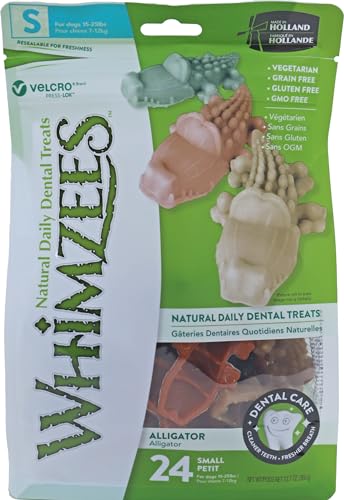 WHIMZEES Natural Dental Dog Chews Long lasting, Small Alligator, 24 Pieces
