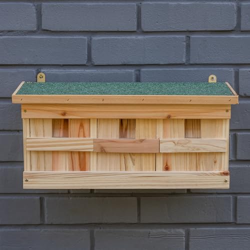 Woodside Wooden Garden Nesting Wild Bird Box for Small Birds, Sparrow Colony Terrace with Weather Protected Roof, 3 Nesting Chambers, Easy Wall Mount