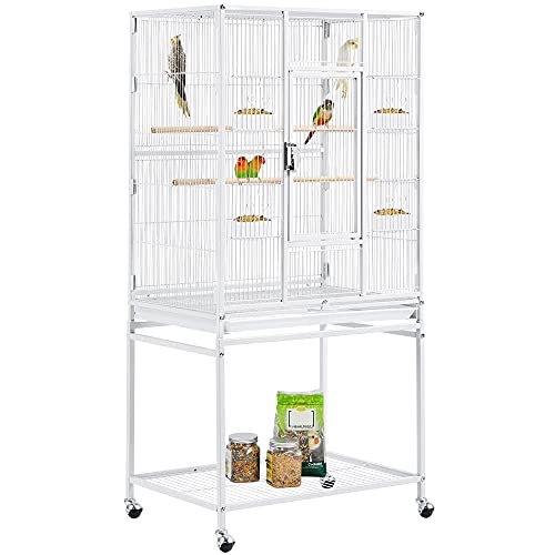 Convenient moving: Due to its large size, it may take a little effort to move this cage. However, our parrot cage comes with a stand that sits on four 360° swivel smooth rolling casters, which can perfectly solve this problem. Detachable mobile stand can be easily removed if needed. Besides, you can even attach the casters to bottom of the cage directly to make the cage mobile without a stand.