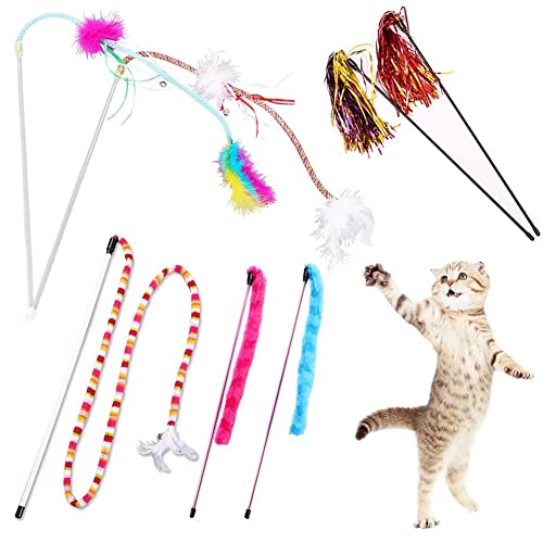 ?7 PCS CAT TOYS?We offer a brand new 7 piece set toys. Every funny Cat Toy Wand is an upgrade, this is unique. Value for money. When you play with Kitten you will feel unprecedentedly relaxed and happy.