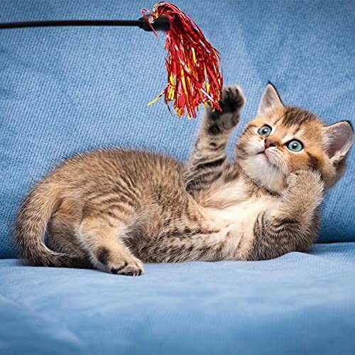 ?PLAY WITH YOUR CAT?Our Cat Toys Set are dedicated to strengthen the relationships between you and your cat and reducing the distance of playing together, so the length of the funny cat toy wand just happens to make the cat play around you. When the cat performs well, you can touch their in time.