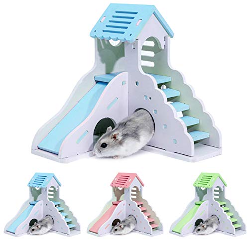 Yunnyp Hamster Sleeping Nest Color House toy,Double Layer Hamster House Dual-layer Pet Play House with Stairs Slide