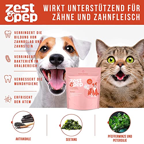 ZEST & PEP PROMISE: We pride ourselves on creating pet supplements that enrich the lives of your furry friends. If you see no improvements in your cat or dog's dental health after 60 days, contact our customer support team and we'll make it right.