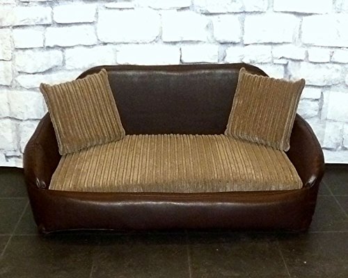 Zippy Faux Leather Sofa Dog Bed - Large - Brown & Mocha Jumbo Cord